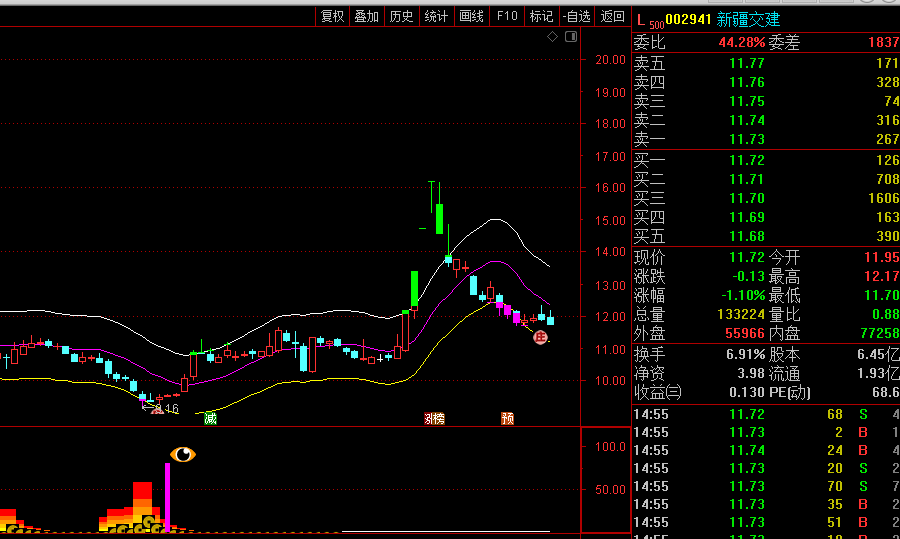 3,股价经过短期、快速反弹后,回到破位阴线上方,完成挖坑任务;