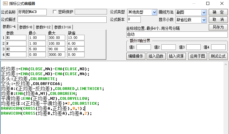 正均差:=EMA(CLOSE,N3)-EMA(CLOSE,N4);