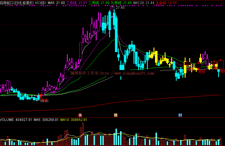 生命线:EMA(CLOSE,453),LINETHICK1,COLORRED;