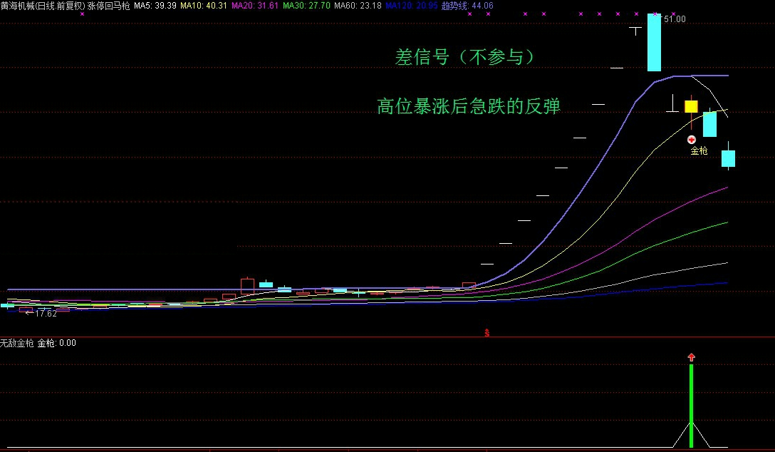 不操作的差信号:前面涨幅很大的高位票(属于拉高出货式)、多波上涨的后期位置的票(属于衰竭上涨式)、出现在下降趋势中,均线空头发散的票(属于弱反弹票)。
