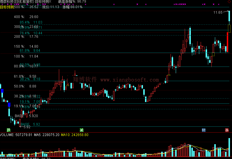 DRAWTEXT(CURR=GTHT AND 目标线=1,四*1.011,STRCAT('38.2% ',CON2STR(SXL*1.382,2))),COLOR889900;