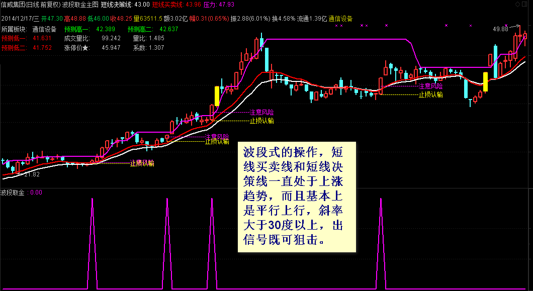 买入基本上都能迎来主升行情,强势股无论怎么回调都不会破短线决策线,很多基本是直接跳空,连续涨停.同时必须结合题材和龙头思路,牛股更容易擒获!