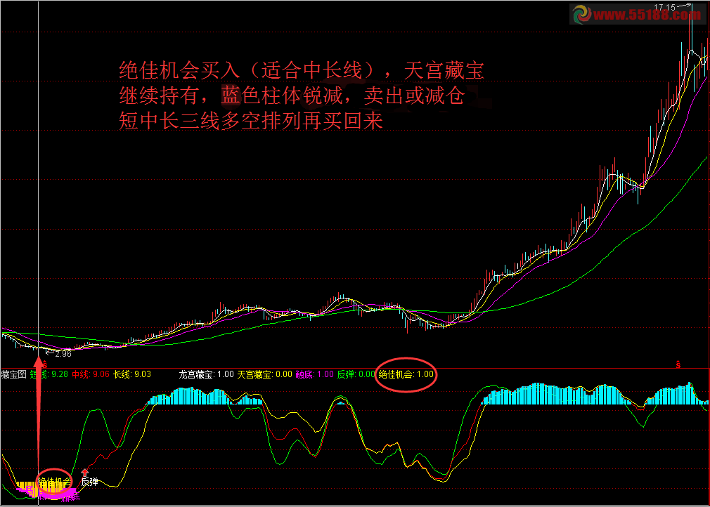 3.天宫藏宝(即天蓝色柱体)继续持有,天蓝色柱体锐减卖出或减仓;