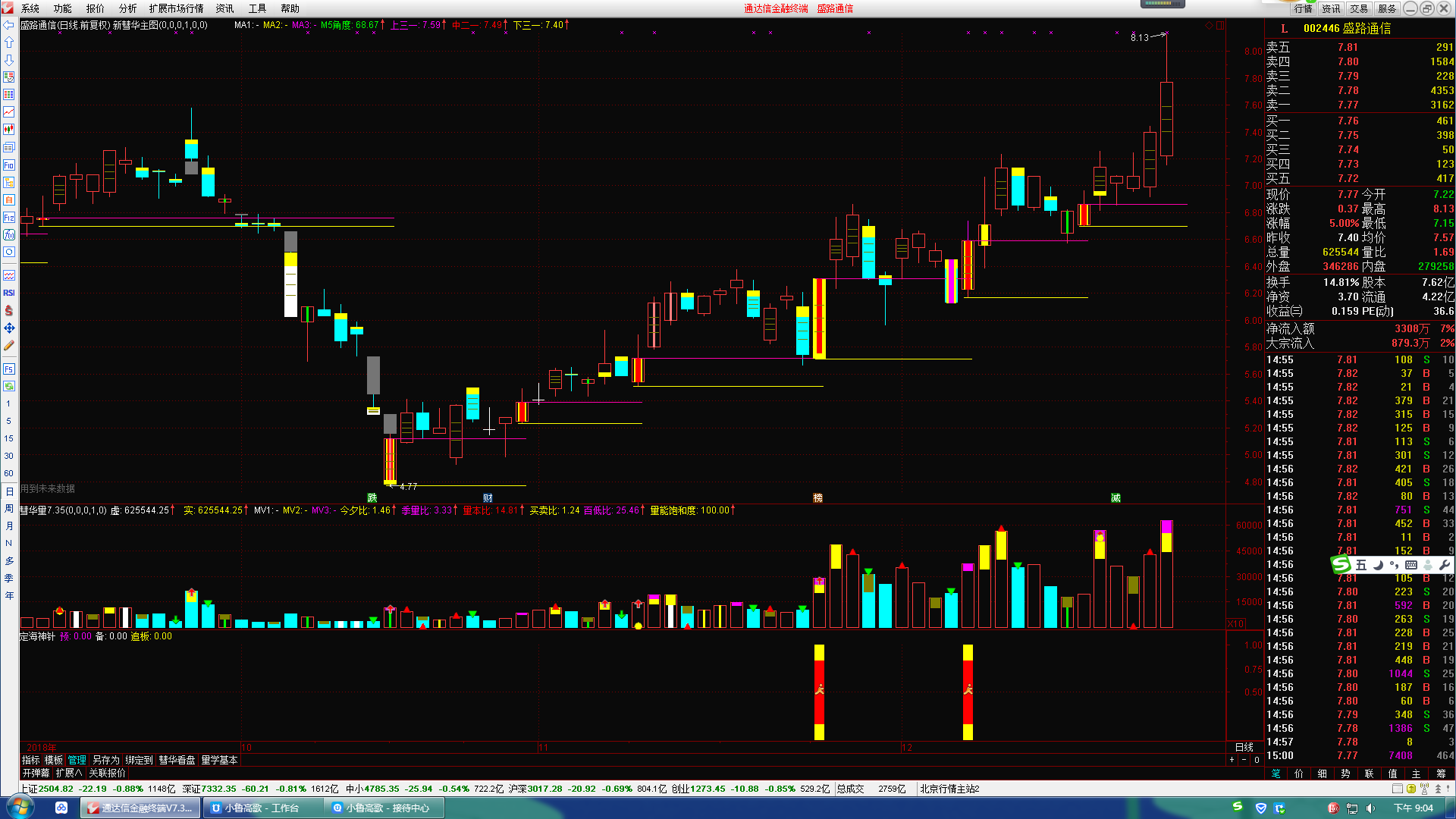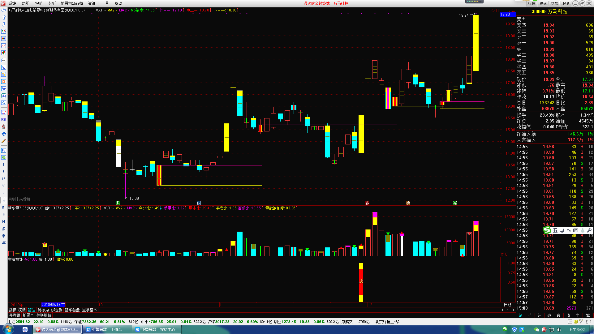 这个指标高胜率,抓连板的原因是什么呢?应该如何研判,做到优中选优呢?介入时机如何把握,小鲁以德力股份2018年12月25日的定海神针信号为例,从量柱、价柱、量线、量波、封板动作等方面分析了它的涨停基因并标注在截图上,请对照附图理解。