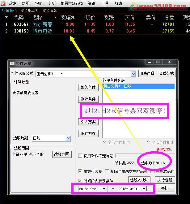 狙击必板近2个月捕捉妖股:2018年8月份捕获德新交运、乐视网等连板妖股,2018年9月份捕获通光线缆、绿色动力、升达林业、斯太尔、合力科技等连板妖股!
