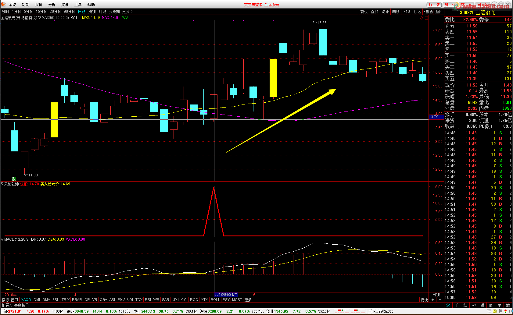 产品介绍 天地乾坤》指标不含未来函数,不含准未来函数,不引用周,月K线数据,当日收盘后信号漂移,不后补。如与上诉不实,本信郑重承诺全额退钻。 《天地乾坤》指标抓涨停,