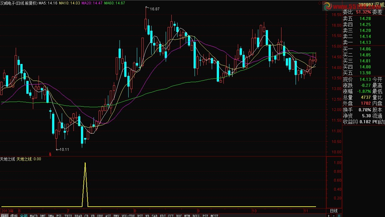天地之线注意事项: 如果信号出现之日收盘价在MA60之下,则看当日是否收阳线,如果是阴线则观察次日及后日走向, 必须阳线才可介入 ,如果当日涨幅为0,则根据经验具体分析,长