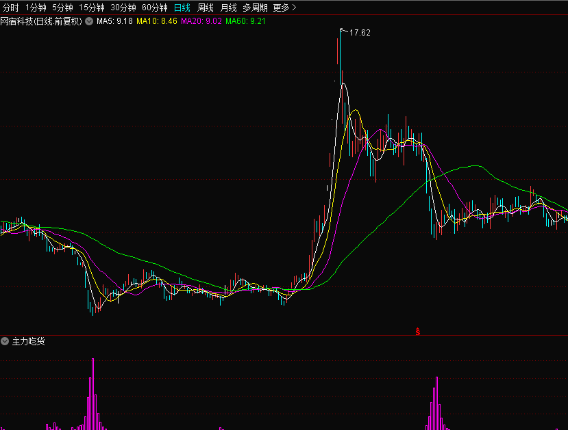 主力吃货副图指标:主力 吃货副图信号为阶段底部信号,为主力建仓波段操作,建仓信号信号持续时间越长说明主力吃货越多,后期看涨,指标仅供参考!