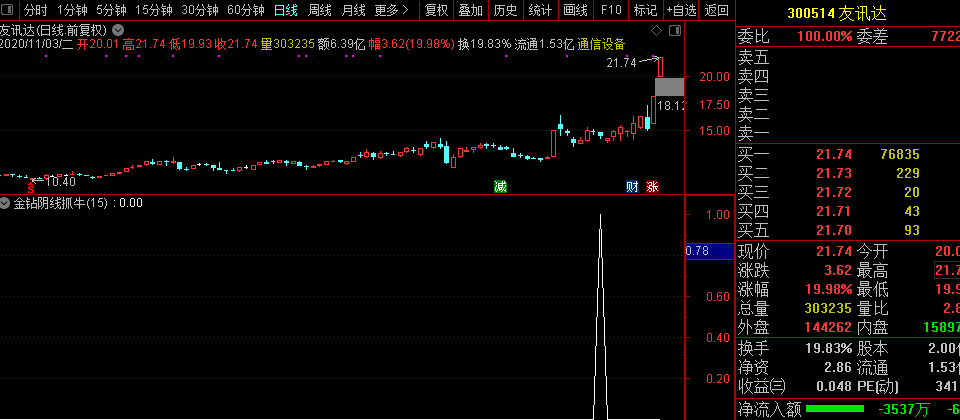 金钻阴线抓牛指标例子展示