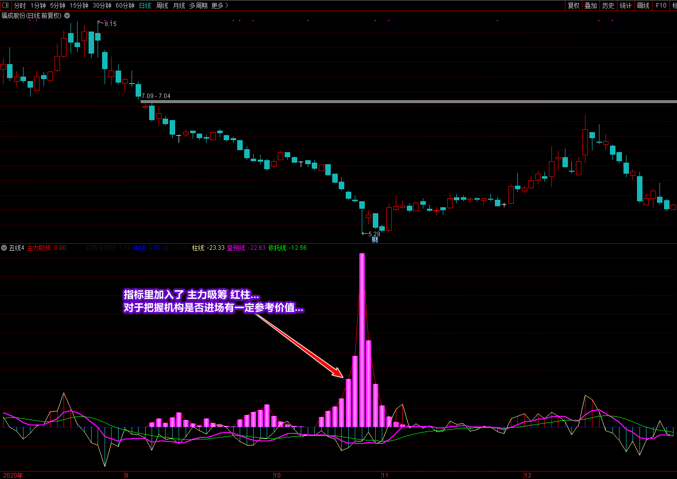 一个好的指标胜过一个指导老师,一个没有实战作用的指标也可以把你引入歧途,使你坠入深渊。我的一些指标都是尽量贴近实战要求,用最简便的方法和贴合实际的写法来使使用者得到实际的效果。《丑线》指标是应该同学要求发布的一个超级短线指标,因发布在辛丑牛年,所以起名为《丑线》。此指标最大的特点是贴近于实战性,个股的每一个起伏点都可以提示你进出的时间点,在指标的指引作用中,最大程度提高了指标的提前量,使你在操作中可以提前介入和尽早卖出,避免跌幅过大了出现死鱼不怕开水烫的现象发生。特别是《丑线》里抓涨停的方法是非常实用且见效的一种操作,如果配合中长趋势指标使用效果更佳。只要你严格按截图说明中的方法操作,会经常来报喜的。因为我实际操作过、实际抓到过,所以对这种方法还是屡试屡胜的。虽然此指标没有经过过多修饰,之所以叫丑线看越来不是很漂亮,但实用性还是非常强的。它可以在盘中预警使用,也可以在盘后选股,因是超短线,所以作为盘中选股信号是会多些的,但给出的选股一旦出现,只要看准形态,每天想赢得个四五个点还是轻松的。这在以后我会将一些个股的好形态好形态收集好,作一个模板让大家观察使用的。