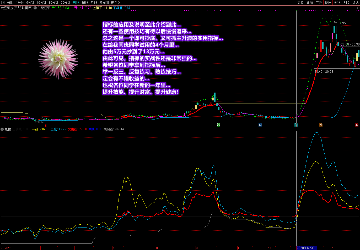 《骑牛上金山》副图是一个容易操作、实效性好、选胜率高不可多得的指标,希望能在当下变化多端的行情中帮得到你,助使你也能抓到主升浪。