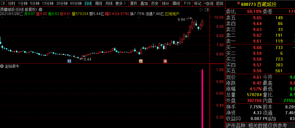 【金钻牵牛】是一款极具实战操作价值的超短线实战指标。指标全套包含副图、选股。下面信号例子: