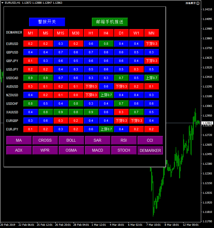 多指标 多周期 多品种 趋势全景 警报 推送 MT4指标MT4平台