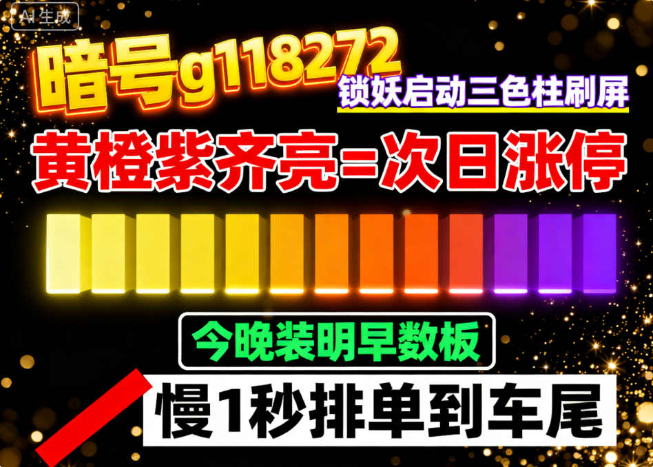 ④ 第三日紫柱“造妖”**点燃→换手>15%+涨停未封死,短打神器。